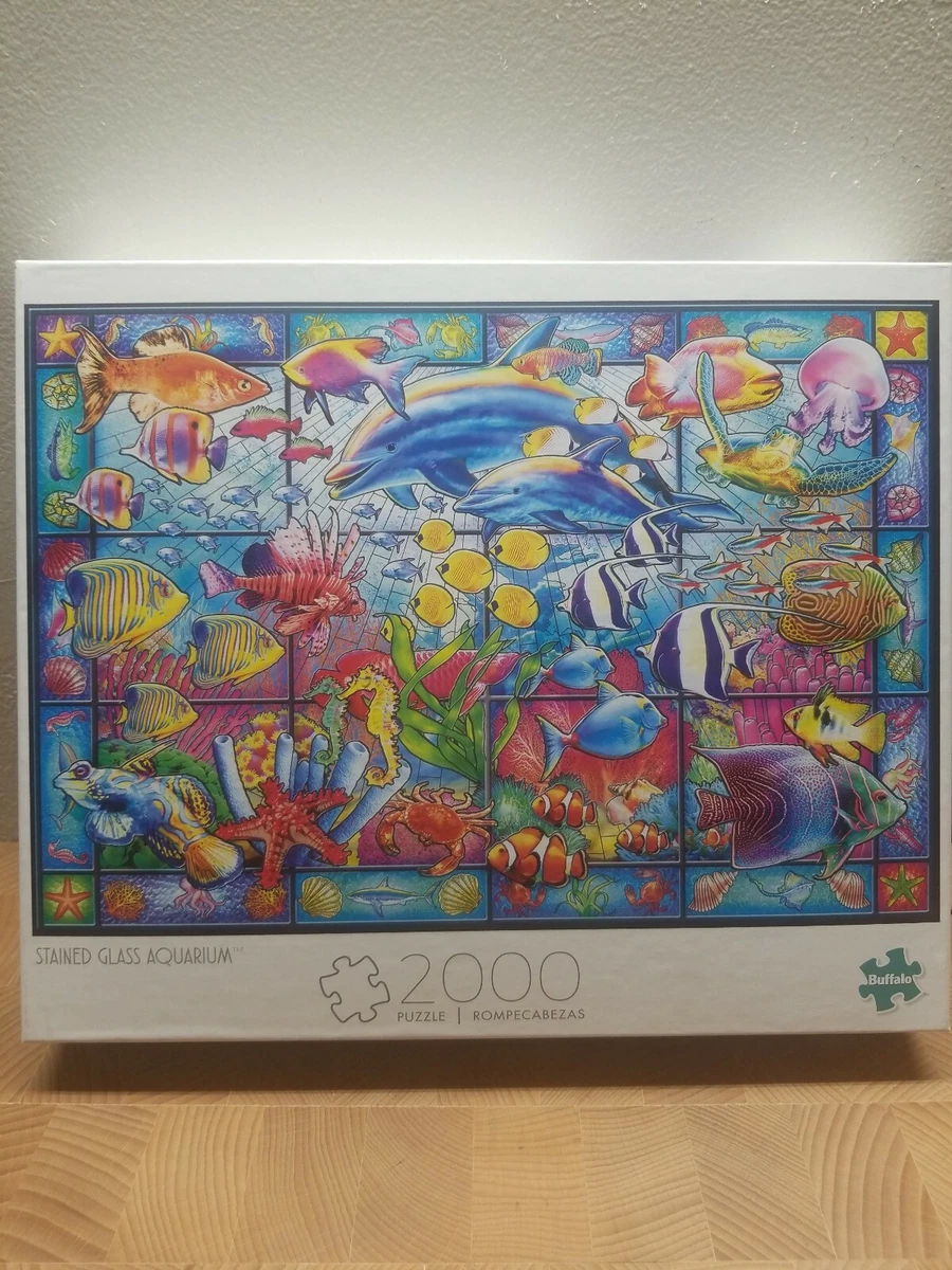 Stained Glass Aquarium Puzzle 2000 Pc Dolphins Crabs Clown Fish Angel Sea Horse Ebay